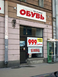 Что нужно делать: напишите свое имя на вывеске Этот магазин находится на той же улице, что и описанный выше. Фасад магазина оформлен большой вывеской с названием и товар привлекательно выставен в витрине. Сразу понятно, что это за магазин и что он продает. Питер, август 2003г. |